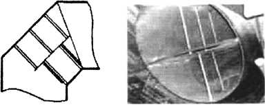 由于現(xiàn)場空間有限,不可能在收球網(wǎng)上方留出相當(dāng)?shù)闹惫芏危虼,在凝汽器岀水彎管段中水平焊接一不銹鋼折流板,見圖2。該折流板位于彎管段中心線處,將循環(huán)水流一分為二,用以規(guī)整彎管內(nèi)循環(huán)水流,使循環(huán)水能夠均勻地流經(jīng)收球網(wǎng),以利于膠球收集。